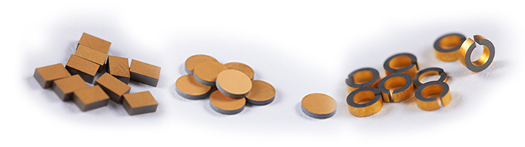 Our soft PZT materials are available as plates, discs, rings, bars, rods and tubes. Other components are available upon request. We also offer our piezoelectric parts in thickness mode, shear rode, and radial poling.  Please click here for more information about common parts and tolerances.